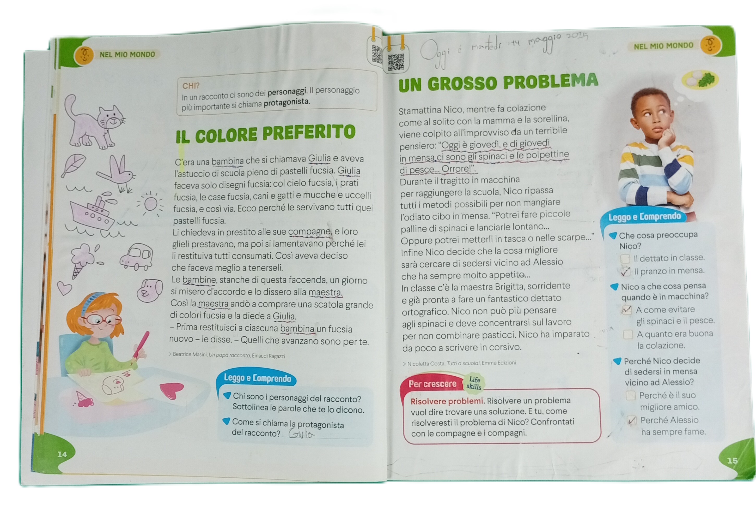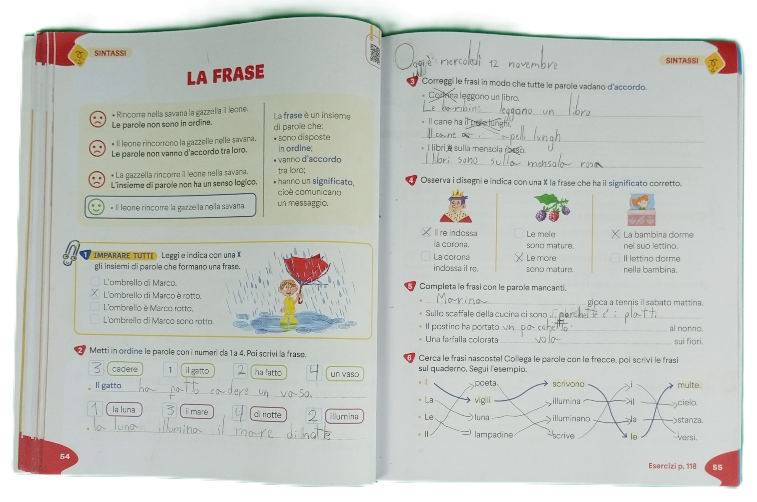 Grammatica e Scrittura: poco uso, escrito en lápiz (borrable).