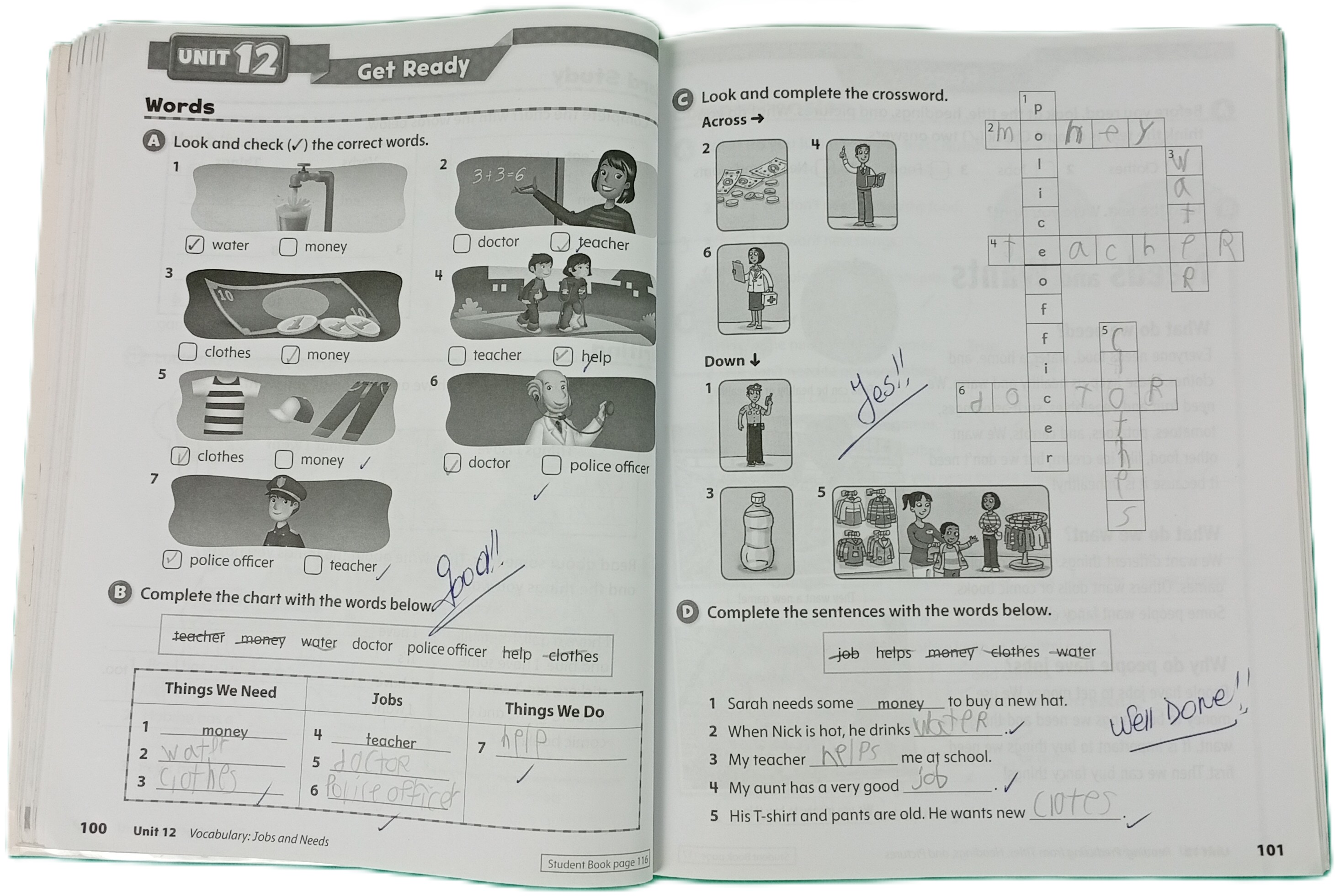 ✏️ Presenta actividades realizadas en lápiz (borrables) y correcciones en lapicera, tal como se aprecia en las fotos.