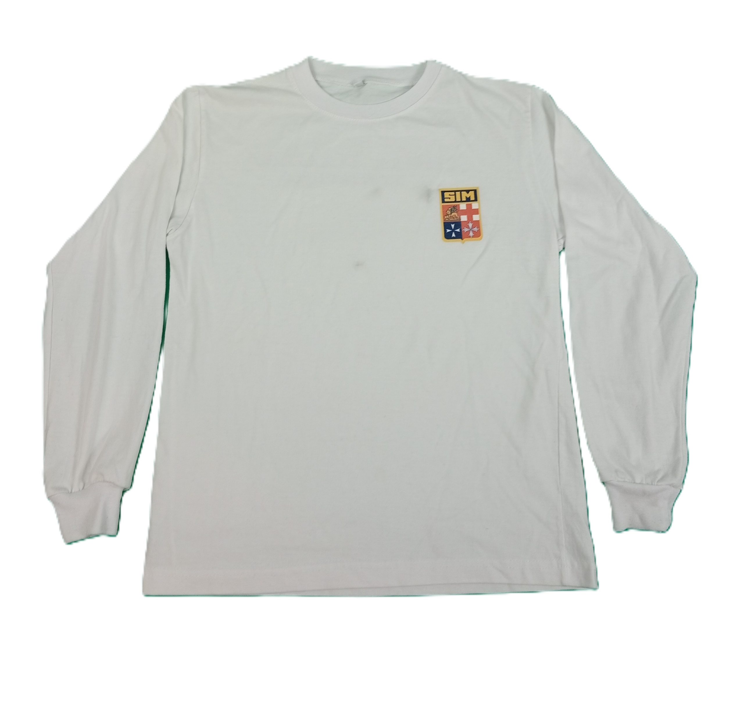 Muy buen estado, pero con manchitas (quitables) algo notorias junto a la insignia y en medio de la remera.